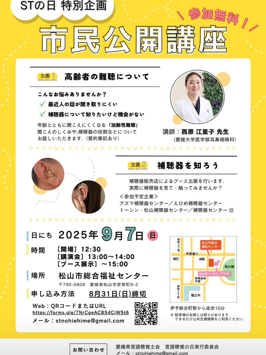 それに合わせて、愛媛県言語聴覚士会が9月7日(日)に市民公開講座を開催します!