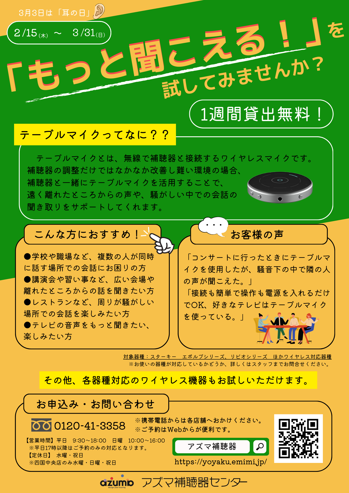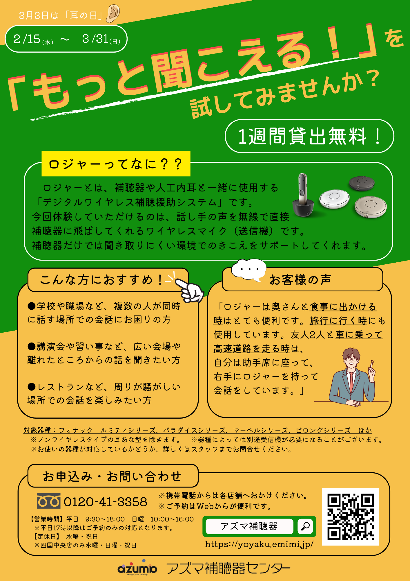 補聴器 耳の日企画「もっと聞こえる!」を試してみませんか?(終了)