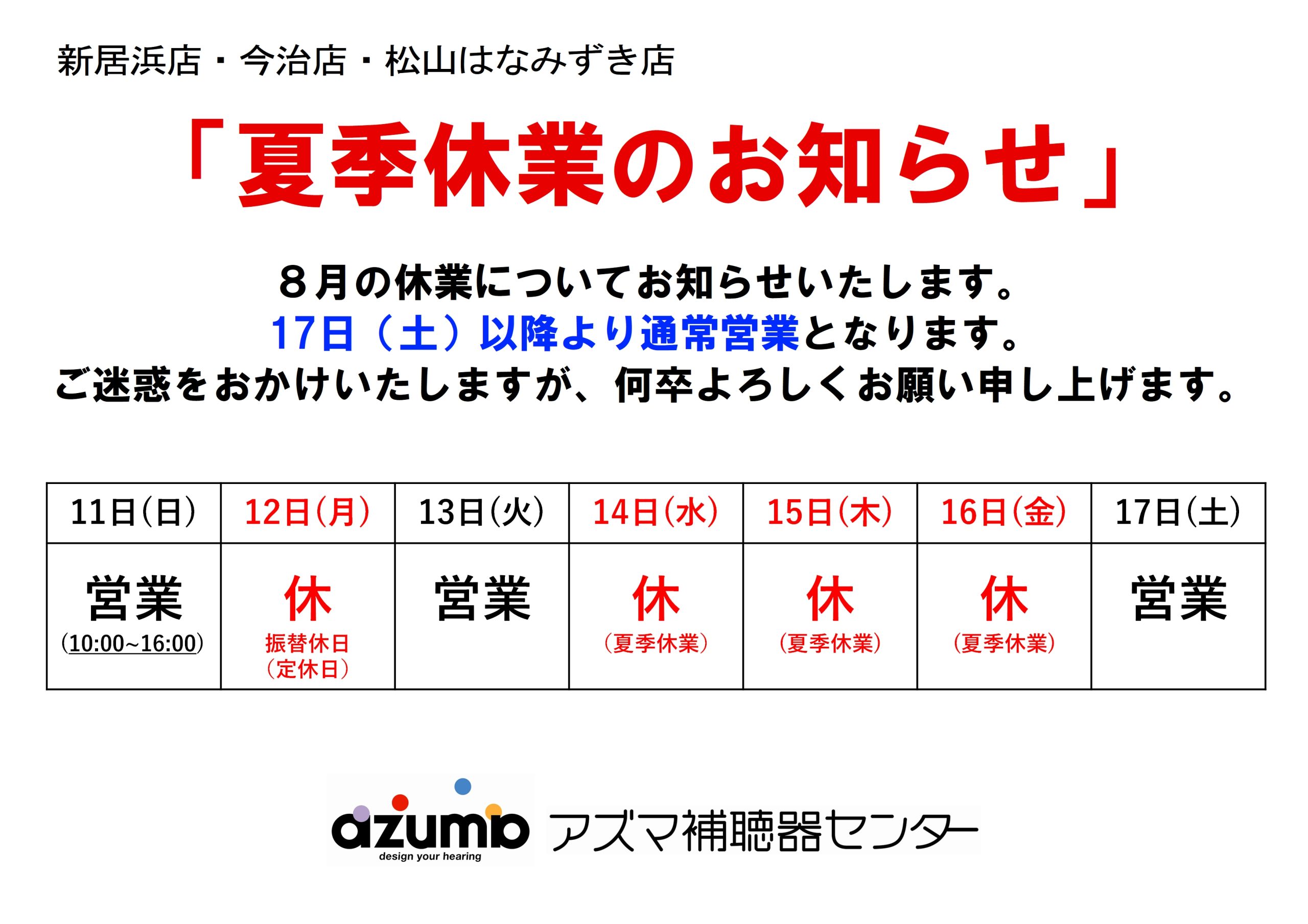 愛媛の認定補聴器専門店 アズマ補聴器センターをいつもご利用いただき、誠にありがとうございます。
