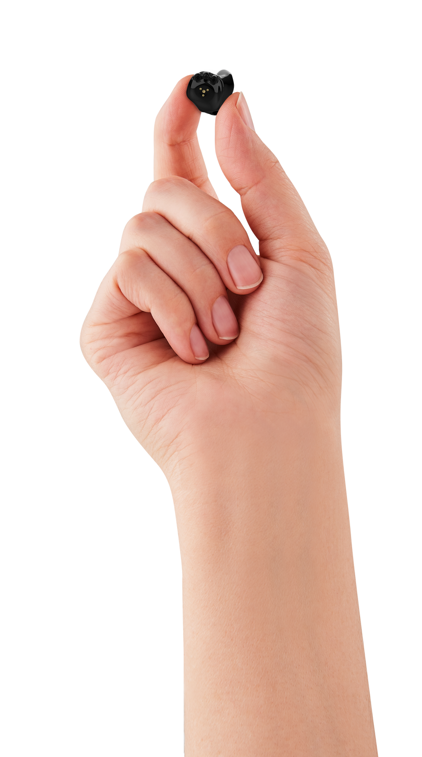 RICタイプはセンサー付き補聴器で世界最小、耳あな型は充電式オーダーメイド補聴器で世界最小のサイズなので、まるで着けていないような快適さ。