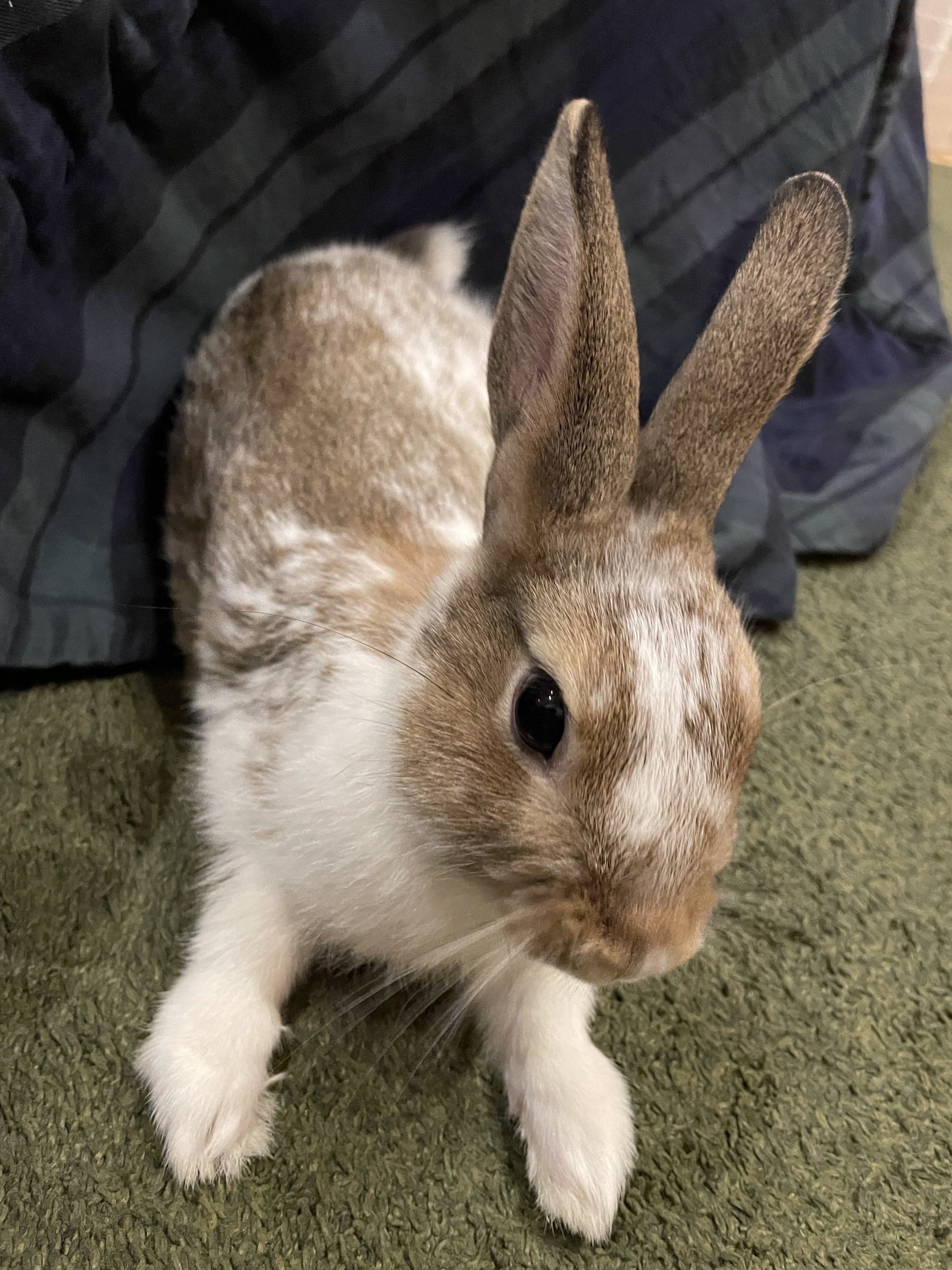 ウサギは声帯がないので、鳴かないのですが、ぴょんっ!とジャンプしたり、後ろ足でダンダンして怒ったりして 感情を表現します。そんな姿を見ていて、毎日癒されてます。