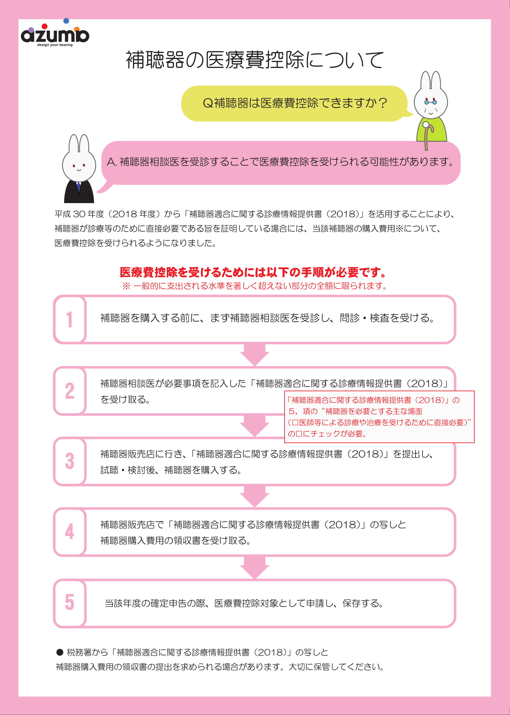診療情報提供書と補聴器ご購入時の領収書、この2つがあれば医療費控除の申請が出来ます!申請の流れは以下の通りです。