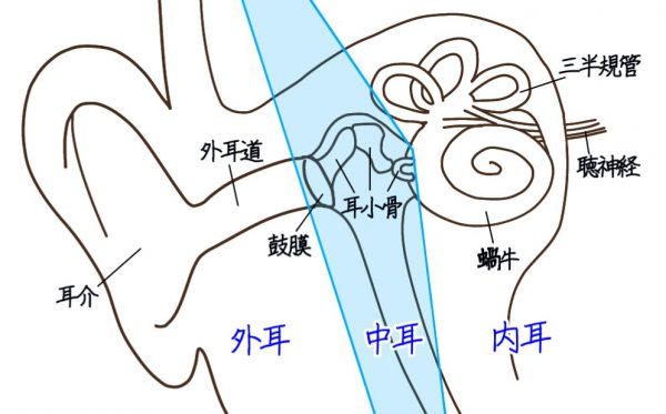 耳の構造は外耳・中耳・内耳の3つに分けられます。