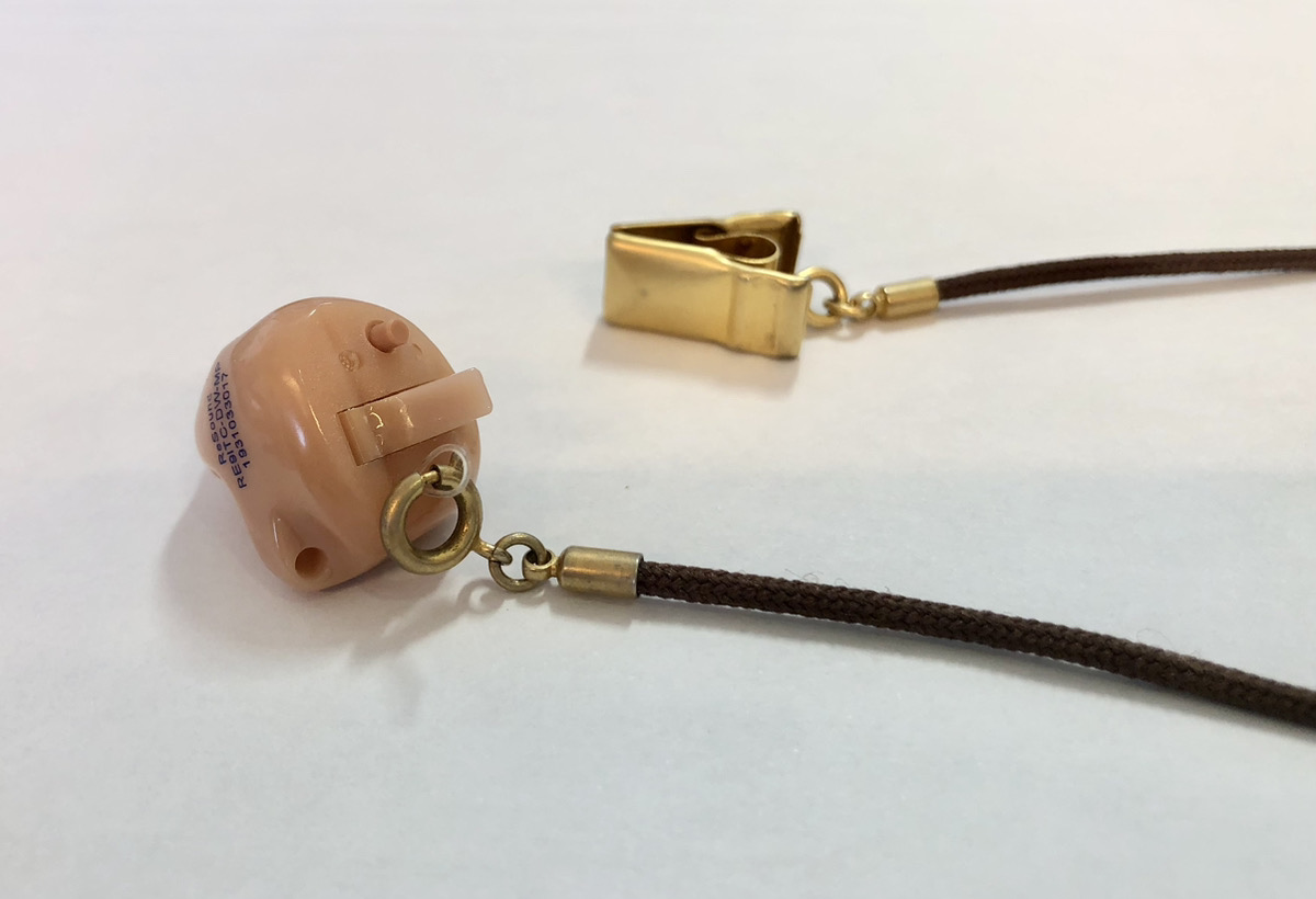 両方の補聴器に金具をつけてつなぎます。