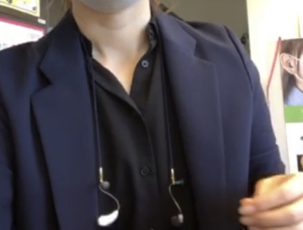 耳あな型補聴器でも、取り出し用テグスが付いている場合は、輪っか状にすることで、このようにイヤチェーンをつけることもできます。