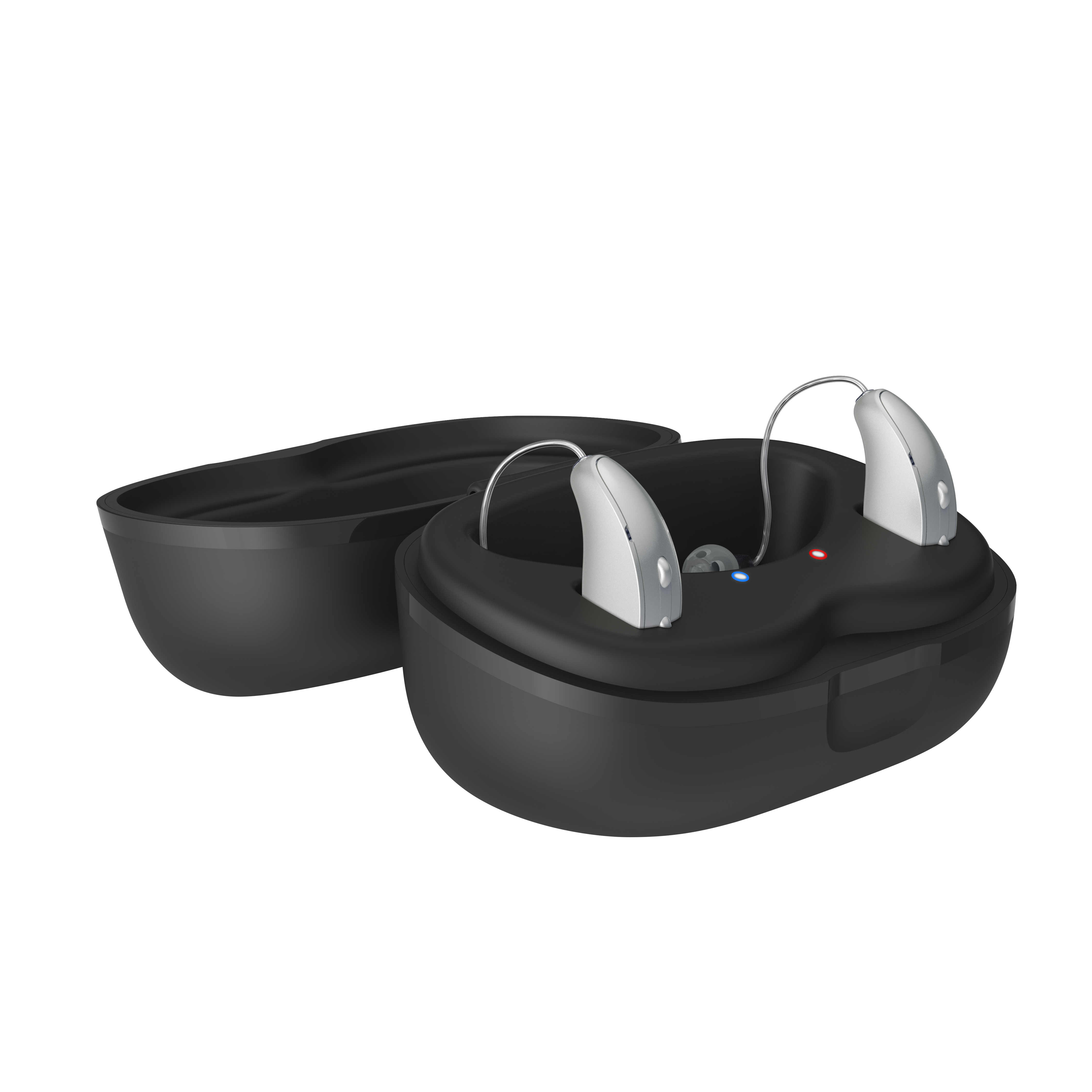 新しいチップによりその容量(10倍)・処理速度(4倍)・トランジスタ数(6倍)がそれぞれアップしたことによる電力効率化、さらに電池消費量が25%削減されたことで、充電補聴器の場合、3.5時間のフル充電で最大2日間連続使用が可能です。